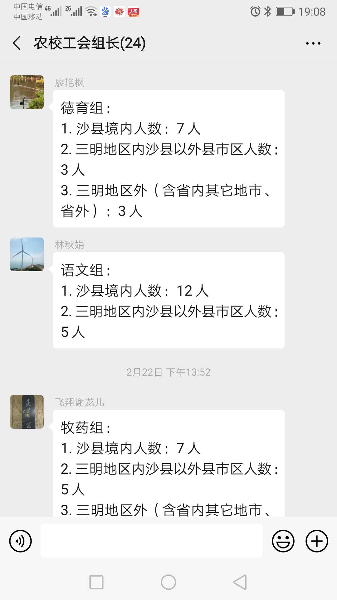 疫情来袭,临危不乱。三明农校党委遵循上级精神结合本校实际迅速部署防疫阻击战,由于学校有多名湖北籍老师,况且有的放假回了老家,防疫任务无疑很重。这担子自然落到工会,落到工会常务副主席陈勇身上。