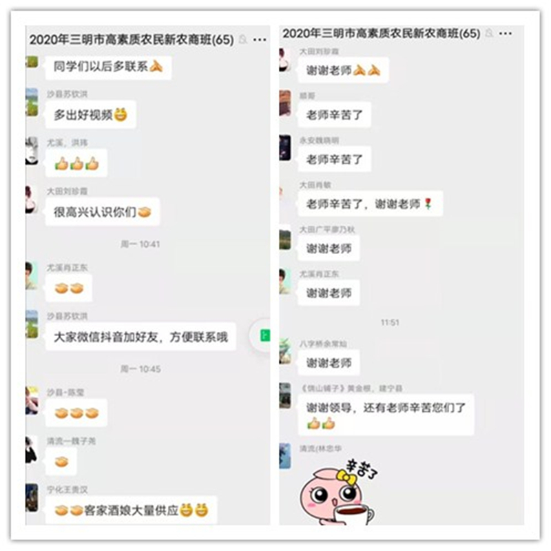 2021年1月11日,2020年三明市市级高素质农民新农商培训班学员完成7天的学习任务(线下6天,线上1天),顺利结业。