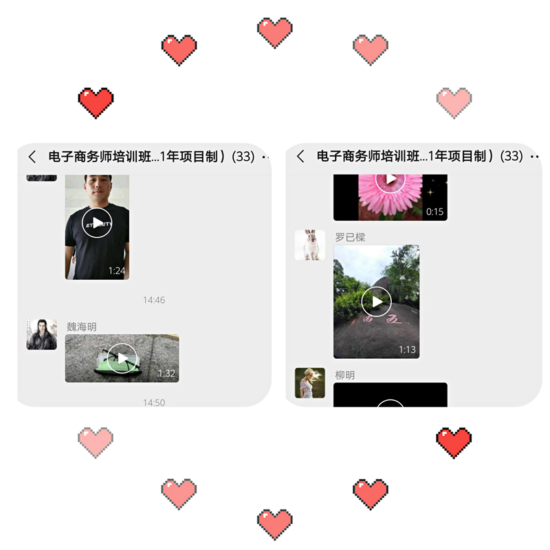 为便于培训过程管理和增强培训实效性,培训班建立了微信群,学员将制作的短视频、模拟电商直播带货活动视频等上传,供师生交流、点评,促进共同提升。